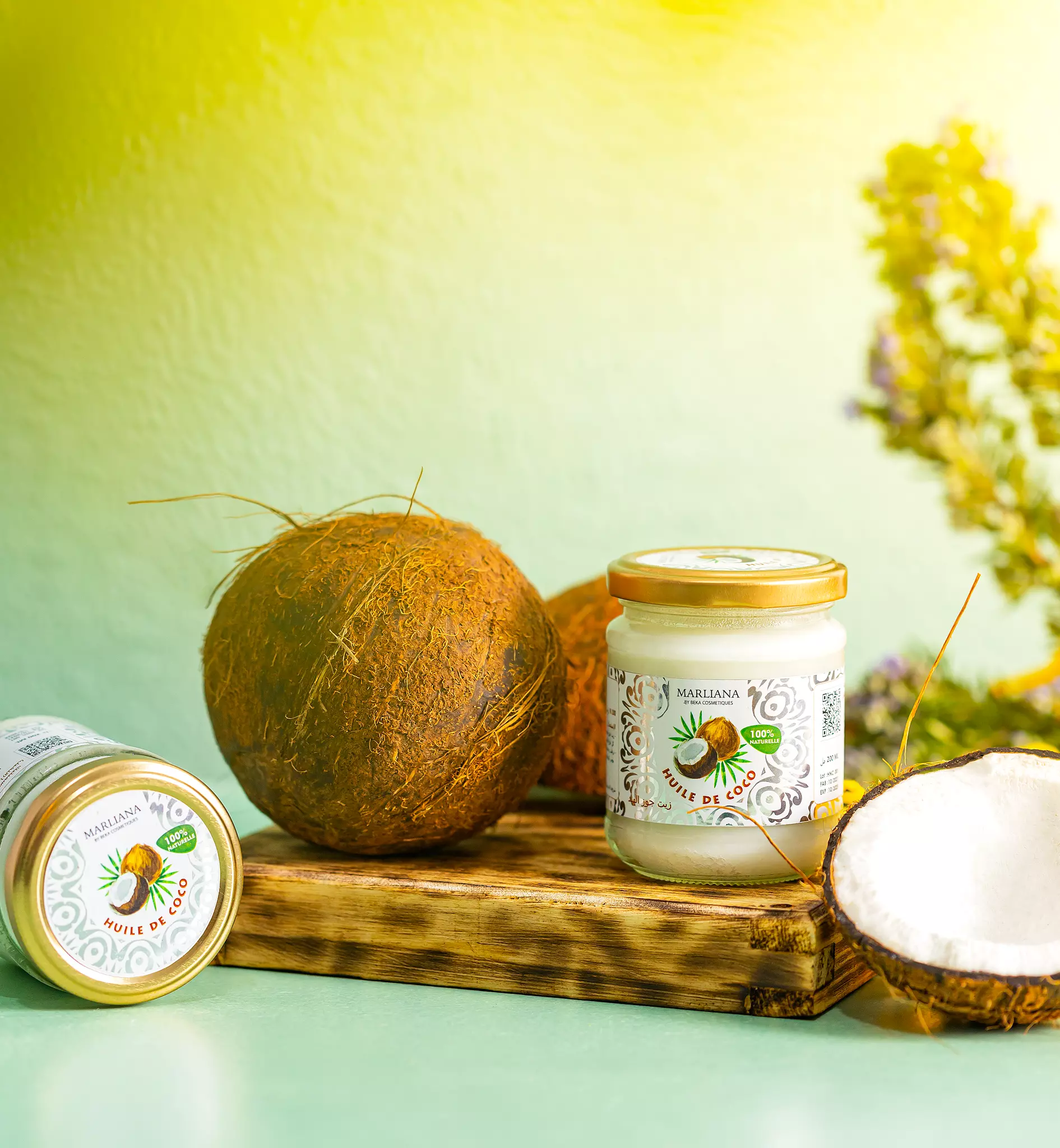 L’huile de coco Marliana®, 100% pure, est un véritable élixir de beauté aux multiples vertus. Extraite de la chair de la noix de coco, elle est riche en acides gras saturés à chaîne moyenne, en vitamines et en antioxydants, ce qui en fait un ingrédient incontournable pour prendre soin de votre peau et de vos cheveux.